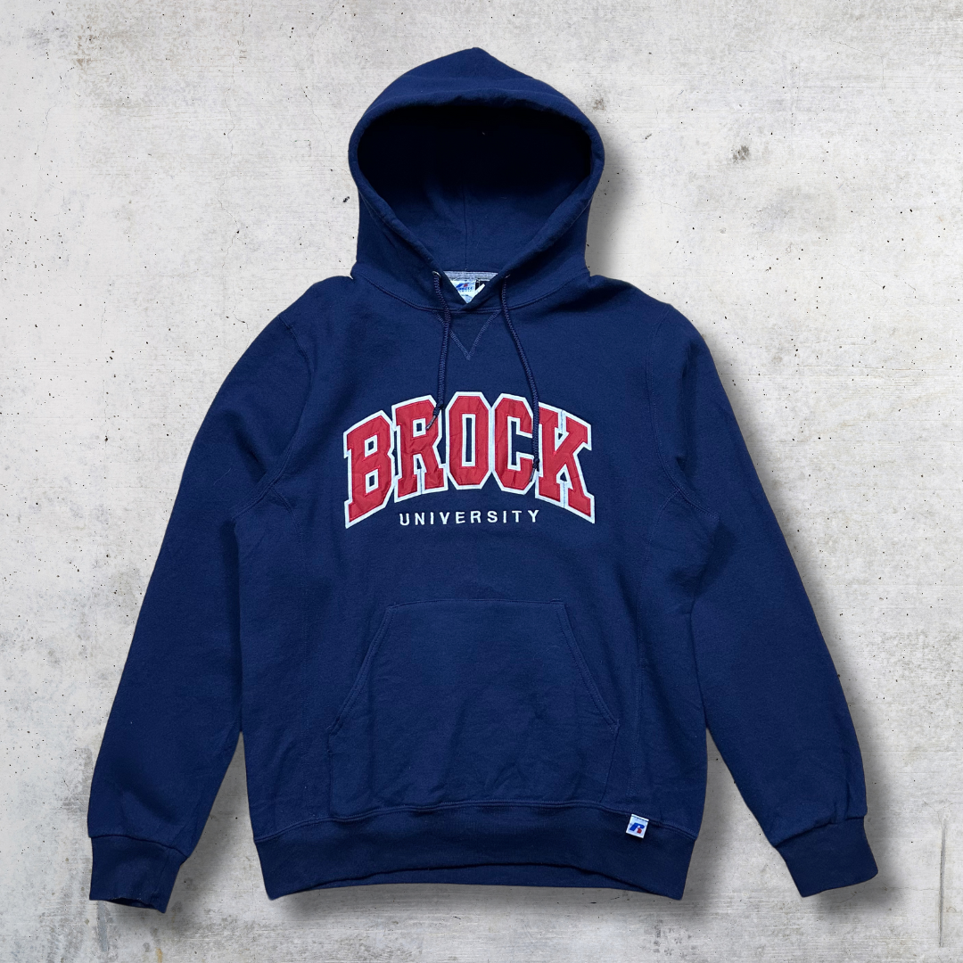 HOODIE RUSSELL BROCK MARINE SEXE : H TAILLE M : AISSELLE 58cm / EPAULE 52cm / LONGUEUR 66cm CONDITION A