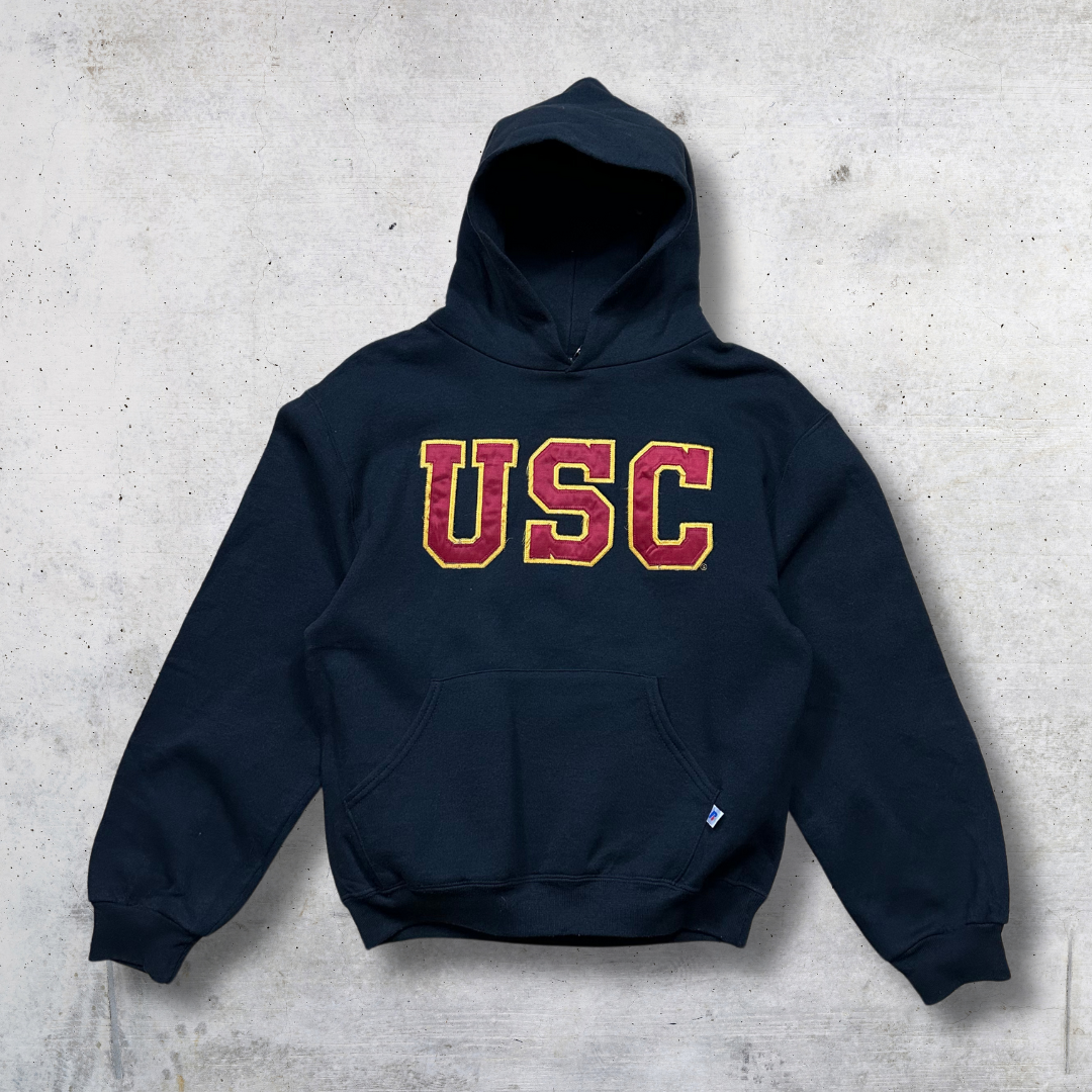 HOODIE RUSSELL USC NOIR SEXE : H TAILLE S : AISSELLE 53cm / EPAULE 57cm / LONGUEUR 57cm CONDITION A